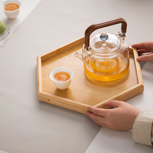 竹木托盘长方形茶盘商用带把手手提复古家用水杯酒店餐盘大小盘子
