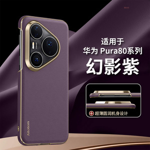 适用华为pura80pro手机壳电镀镜头全包商务80ultra防摔网红真皮套
