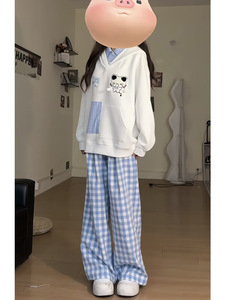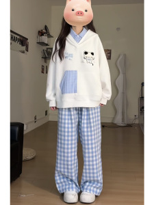 新しいアメリカンカレッジスタイルの子犬刺繍フェイクツーピース長袖フード付きスウェットシャツ秋冬多用途ルーズカジュアルトップ