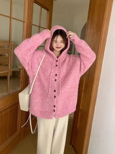 软糯连帽宽松毛衣针织开衫外套女秋冬2025新款慵懒风高级感上衣潮