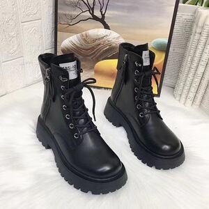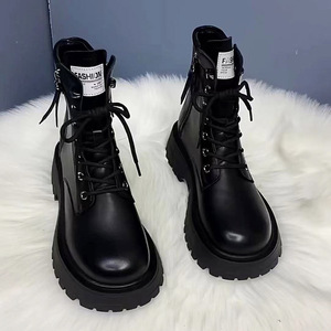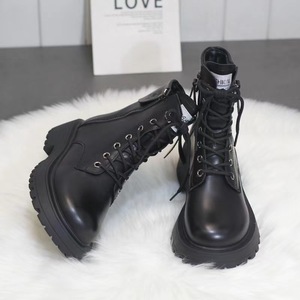 软皮马丁靴女2025秋冬加绒新款英伦风百搭厚底休闲炸街短靴女单靴