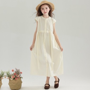 クロスボーダー夏の女の子の純綿ロングクラインブルードレス子供服新しいラウンドネックシャツドレス中大子供ロングスカート