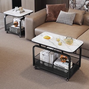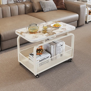 奶油风客厅沙发边桌可移动边几岩板小茶几置物架小推车创意床头桌