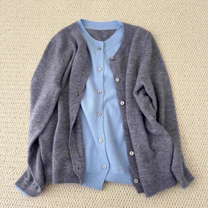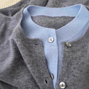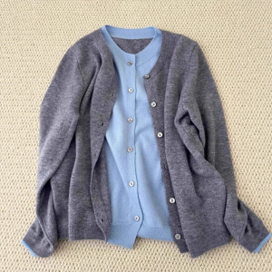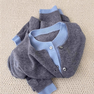 灰色假两件时尚洋气上衣开衫洋气独特别致女秋季内搭打底针织外套