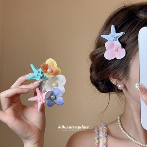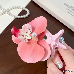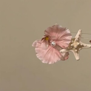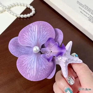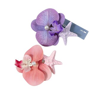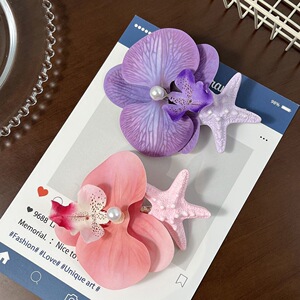 纯欲风珍珠蝴蝶兰发夹侧边夹仿真花朵发卡夹子头饰海边拍照配饰女