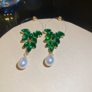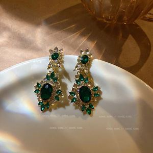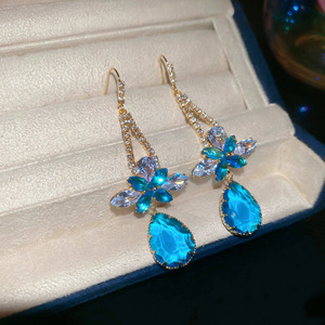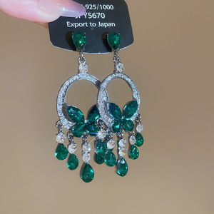 银针祖母绿镶钻蝴蝶锆石水滴流苏耳环轻奢高级感耳钉时尚百搭耳饰