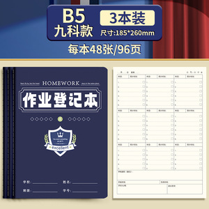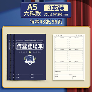作业登记本初中生专用六科目记作业本蓝色英伦风格家庭联系记事本