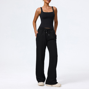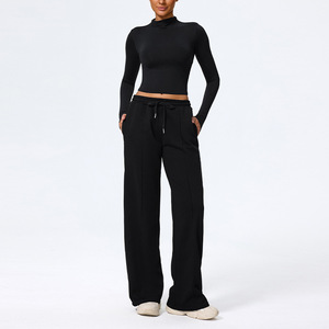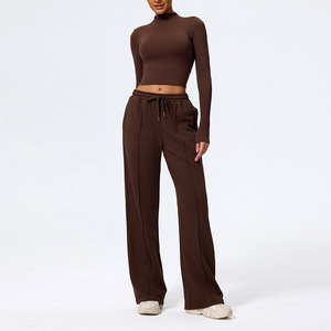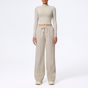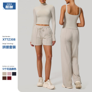 熙伽抽绳运动卫裤套装女高腰阔腿显瘦长袖跑步健身舒适套装TZ308