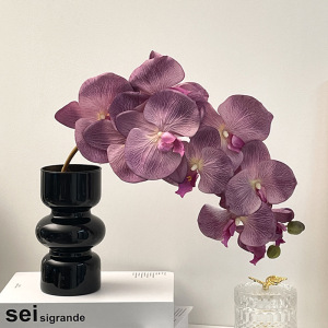 黒の三波花瓶 + 白の胡蝶蘭 + 黒の永久カレンダー無垢材モデル
