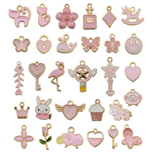跨境粉色滴油合金小配饰diy手链项链耳钥匙扣吊坠配件挂件材料包