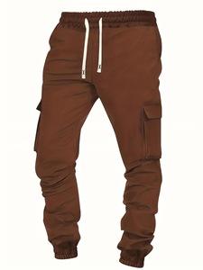 跨境美式秋冬抓绒男式休闲工装裤男士多口袋抽绳4色运动休闲长裤