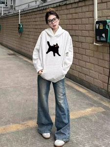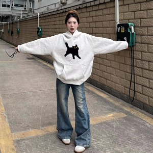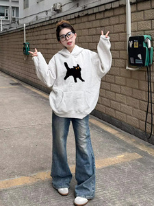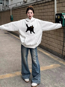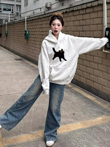 美式复古灰色纯棉连帽卫衣女2025新款爆款春秋冬宽松加绒加厚上衣