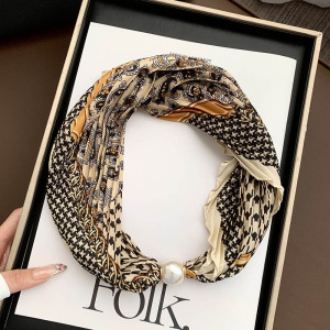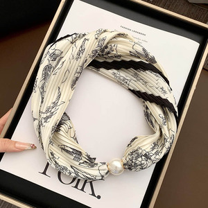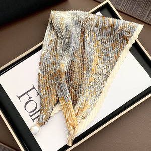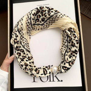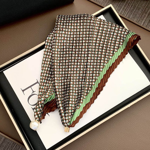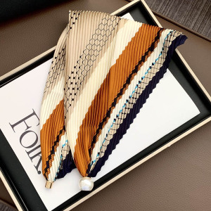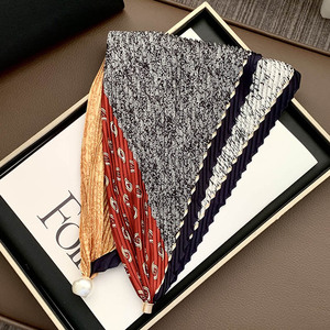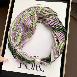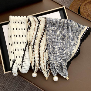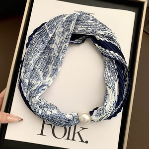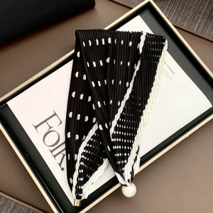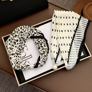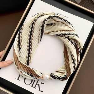 磁気バックルパールネックレス、細長いシルクスカーフ、女性用ネックウォーマー、シャツ付き薄いスカーフ、プリーツシルクスカーフ