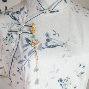 古风胸针中国风莲花荷花胸花旗袍压襟扣流苏复古挂件国风衣服配饰