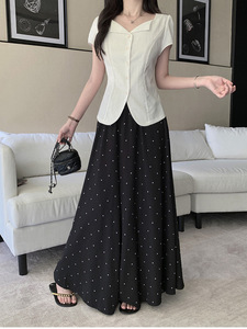 实价实拍2025夏装新款胖mm大码女泡泡袖小衫上衣波点半身裙裤套装
