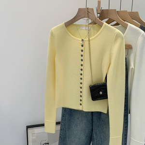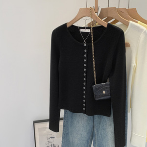 欧货新款针织衫正肩长袖毛衣羊毛衫显瘦上衣女韩系羊毛开衫