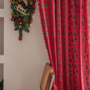 伊缦琪韵圣诞窗帘红色圣诞树烫金小窗厨房帘半遮光飘窗阳台工厂直