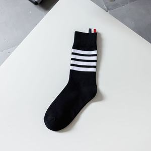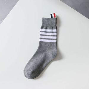 韩版网红百搭四杠条纹TB过膝袜带标个性有型灰色袜子中筒袜潮流款