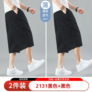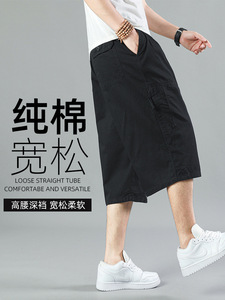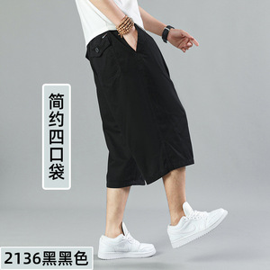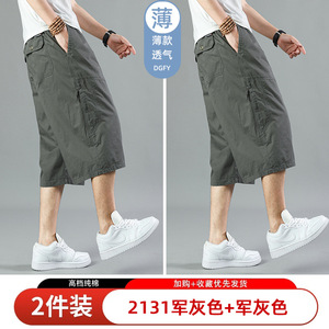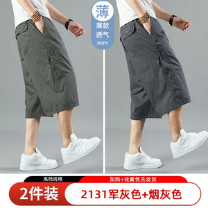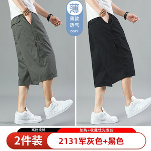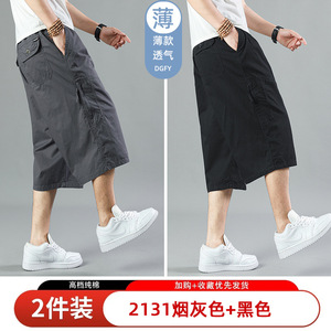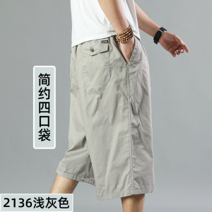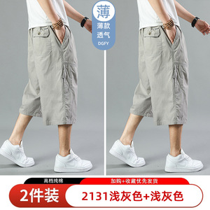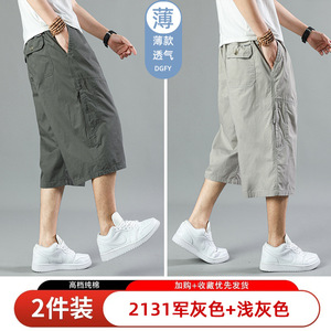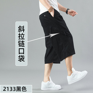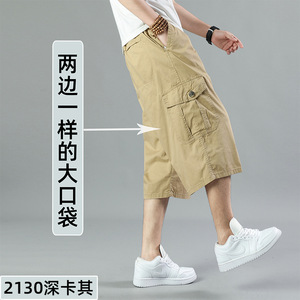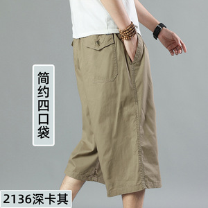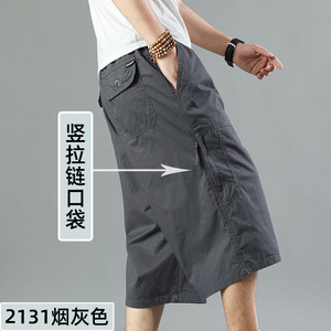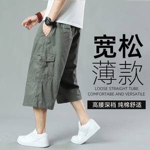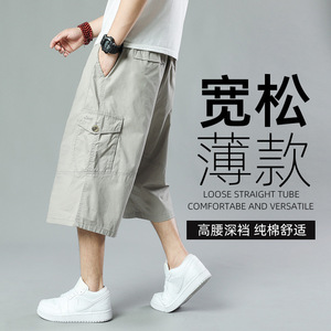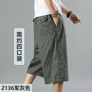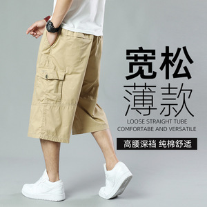 夏季薄款棉男士七分裤加肥加大码色短裤宽松高腰多口袋爸爸装