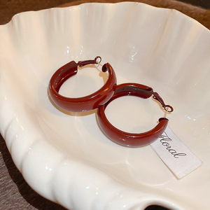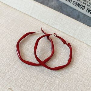 安克拉红银针滴油素圈耳圈女复古港风时尚耳环百搭耳饰设计感小众