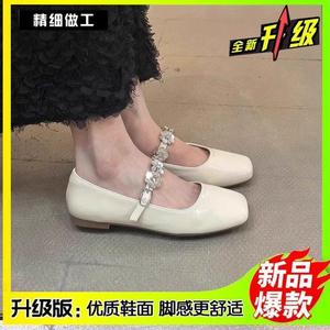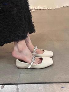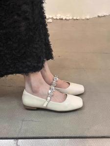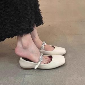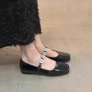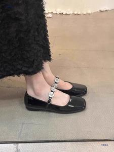 フレンチニッチスクエアトゥスパンコールバックルメリージェーンシューズ女性用2025新しいシルバーフェアリースタイルスカート付きフラットシューズ