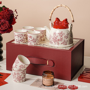 【红花鸟】圆珠提壶(1壶6杯)+锦盒