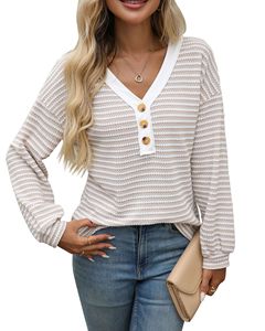 ヨーロッパとアメリカのクロスボーダー Amazon TK2025 新しい女性の V ネックボタンプルオーバースプライシングカジュアル長袖カラーブロック T シャツ