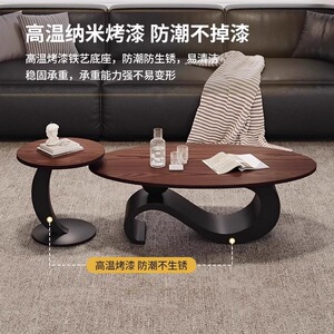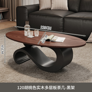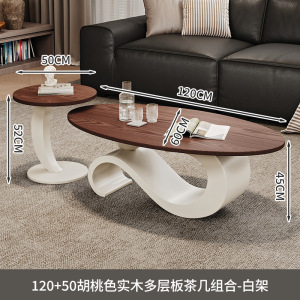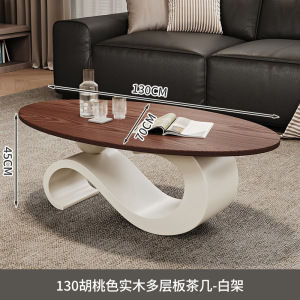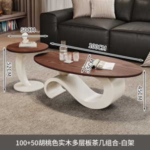 法式中古风椭圆形实木茶几胡桃木色家用客厅小户型简约高级感组合