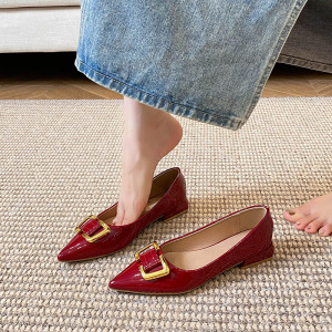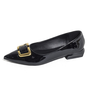 858惠东易鑫达浅口金属扣尖头黑色矮跟通勤工作鞋新款单鞋