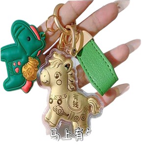 黄金小金马钥匙扣马上有钱马上暴富挂饰包包挂饰钥匙扣汽车扣挂件
