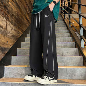 加肥加大码300斤休闲裤男夏季薄款冰丝直筒裤宽松胖子阔腿弯刀裤