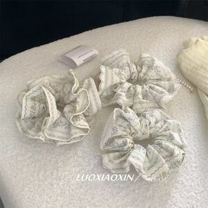 優しい気質の純綿ジャカードヘアゴム夏の新しい韓国風二層花柄ヘアロープポニーテールボールヘッドロープ