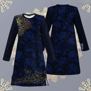 2025 スポットクロスボーダー新ローブプリント中東イスラム教徒マレーシアドレスフルスリーブラウンドネックローブロングスカート