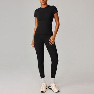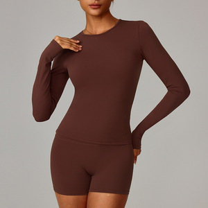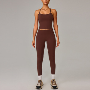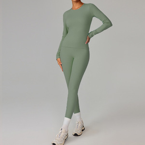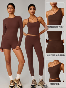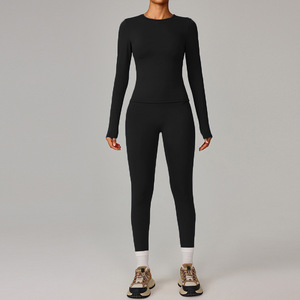 クロスボーダーヨーロッパとアメリカのタイトな起毛ヨガスーツ速乾性フィットネスウェア冬の屋外ランニングスポーツスーツ女性用 8519