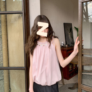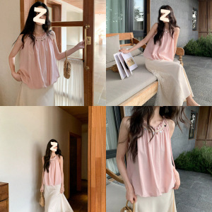 シェルレースのつぼみホルターネックベスト女性のための夏の2025新しいスタイルの年齢を軽減するシャツトップ