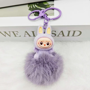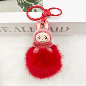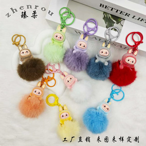 植绒拉布布毛球钥匙扣挂件车载挂饰少女背包挂饰学生闺蜜情侣礼物