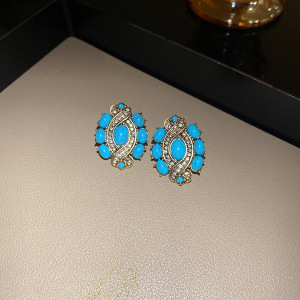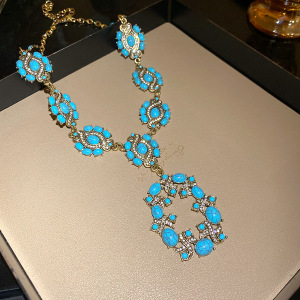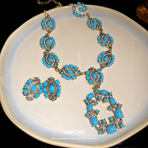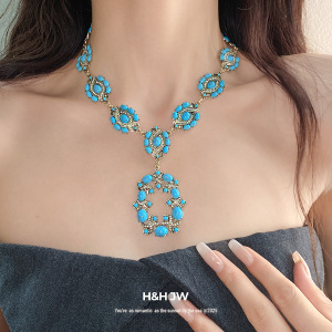 银针镶钻椭圆形耳钉复古民族风夸张个性锁骨链轻奢高级感首饰套装