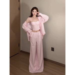 【现货】韩系少女条纹吊带睡衣女夏季新款遛弯裤家居服套装可外穿