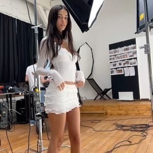 ヨーロッパとアメリカの貿易純粋な欲望 V ネックフリル長袖トップ女性のための 2025 新しいスタイル耳カバー臀部スカートスーツ