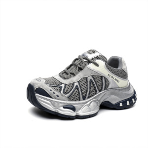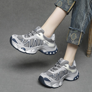 真皮透气拼色老爹鞋女2025新款厚底百搭休闲运动鞋轻便网面跑步鞋