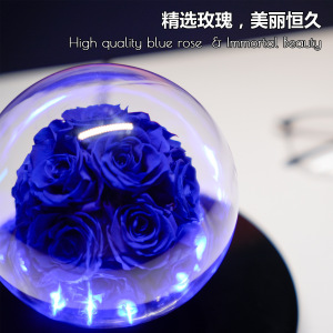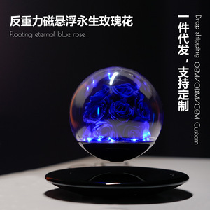 磁悬浮永生花蓝色玫瑰七夕情人节礼物轻奢保鲜蓝色花头玫瑰摆件