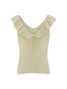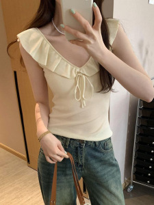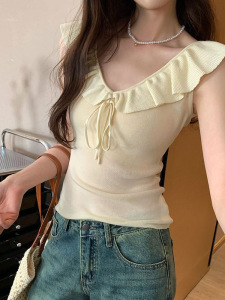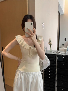 アプリコットスウィートガールシックな気質フリルレースアップノースリーブセーターレディース2025年夏新作ベストトップ