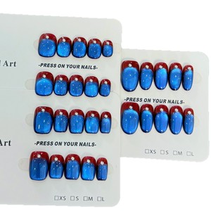 [ブルーエンチャントラー]甘くてクールなスタイルのアンチフレンチブルーキャットアイマニキュア、美白と多用途の手作りウェアラブルネイルバッチ