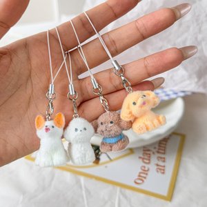 植绒树脂卡通可爱仿真小狗柯基泰迪金毛车载钥匙扣包包装饰挂件
