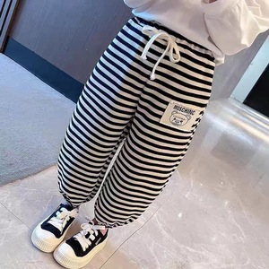 春秋款儿童条纹百搭卫裤女宝宝宽松休闲裤男童运动裤童裤韩风