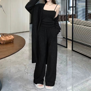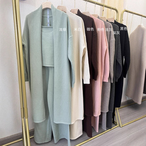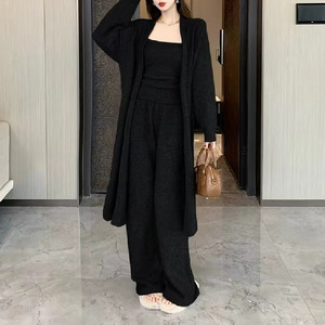 气质慵懒温柔风长款外套秋冬新款吊带毛衣开衫外套阔腿裤三件套
