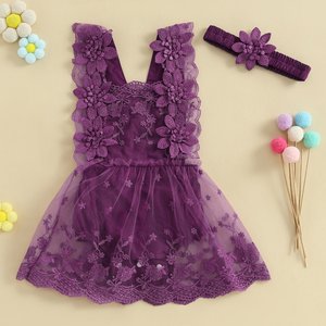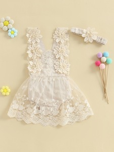 女の赤ちゃんロンパースドレスレース3Dフラワーメッシュスカート裾