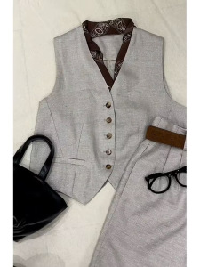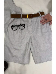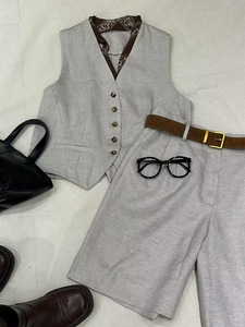 女性用の見事なサマースーツ 2025 若くて成熟したニッチな非衝突グレーリネンベストショーツ 2 点セット