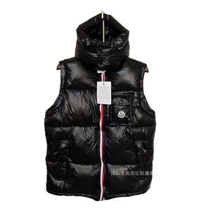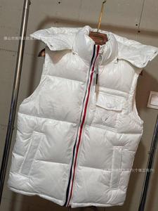 Mengjiaの新しいライトラグジュアリーカラーストライプベスト、光沢のある黒と白の取り外し可能なフード付きコットンジャケット、男性と女性用、厚くて暖かい