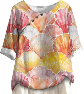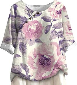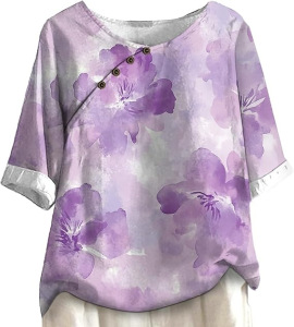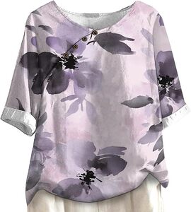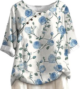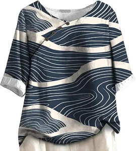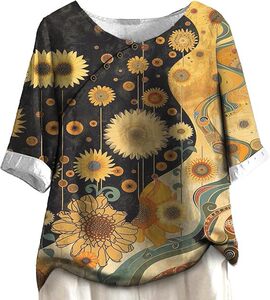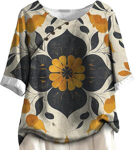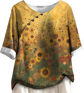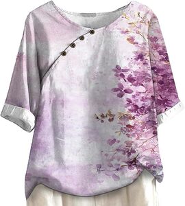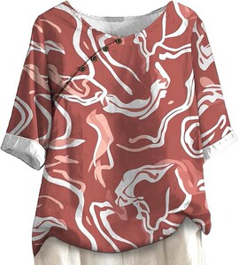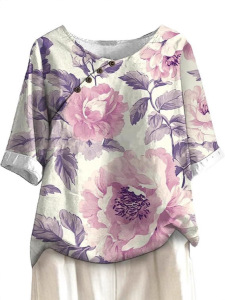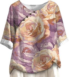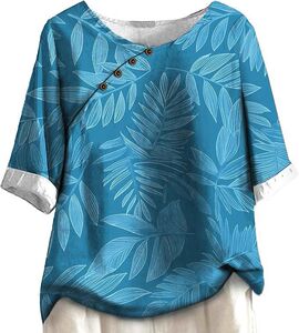 クロスボーダー Amazon 2025 夏ヨーロッパとアメリカの貿易新しい婦人服ファッションカジュアルプリントルーズ半袖トップ